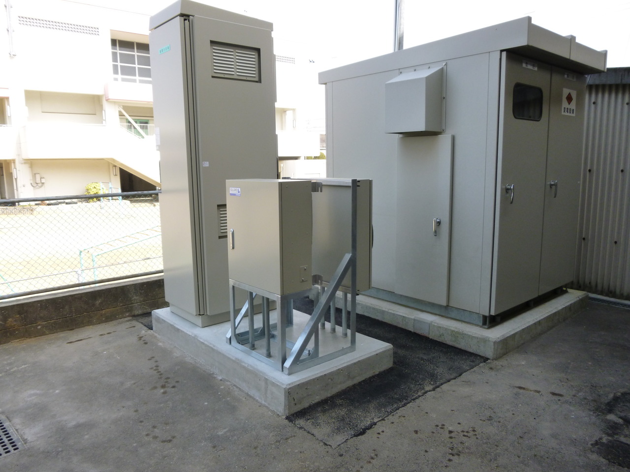 地区の避難施設の非常用電源用の太陽光パネル設置完了です。