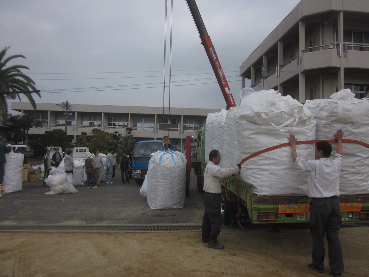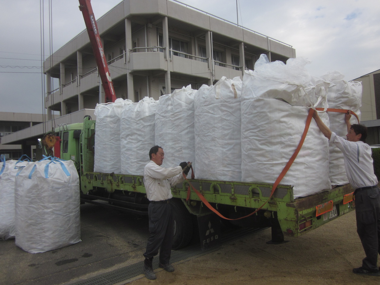 池工トラックたちに積み込みます。年2回しますが今回は多い方だと思います。