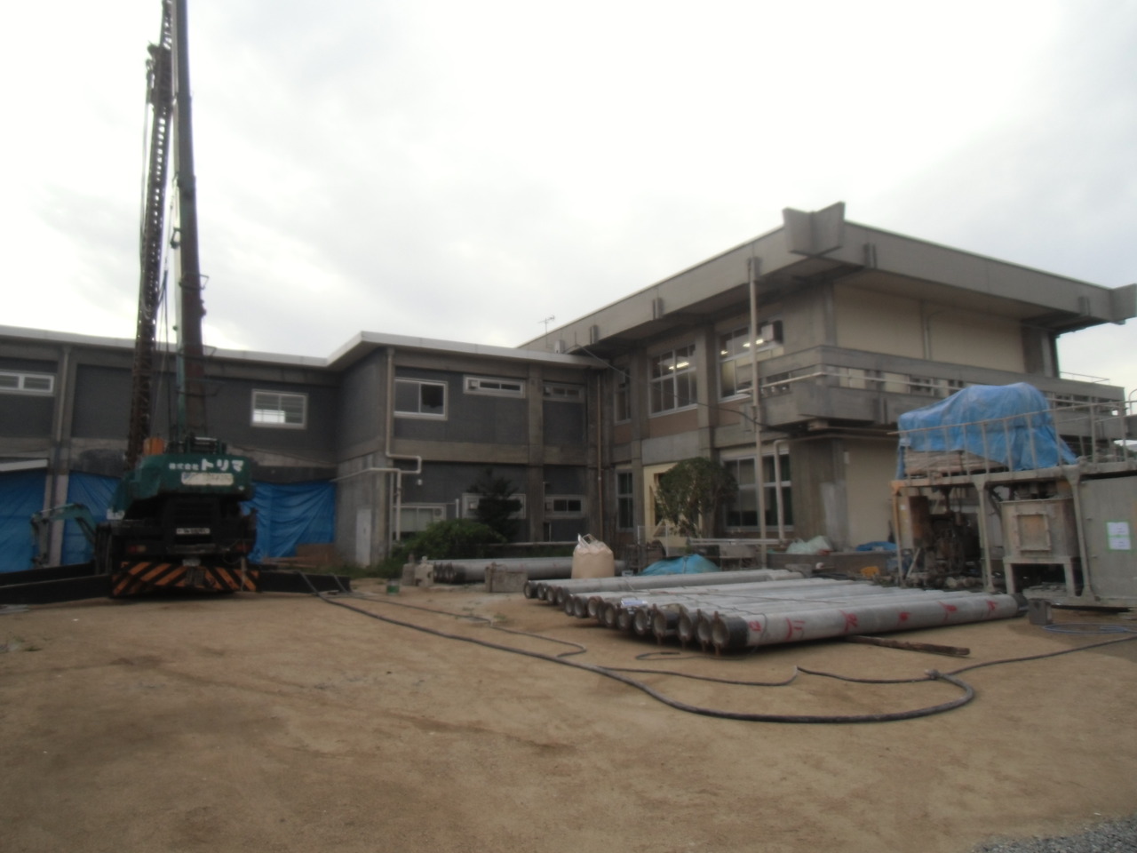 杭打機及び材料、プラントの状況です。明日から安全第一を心掛けて作業します。
